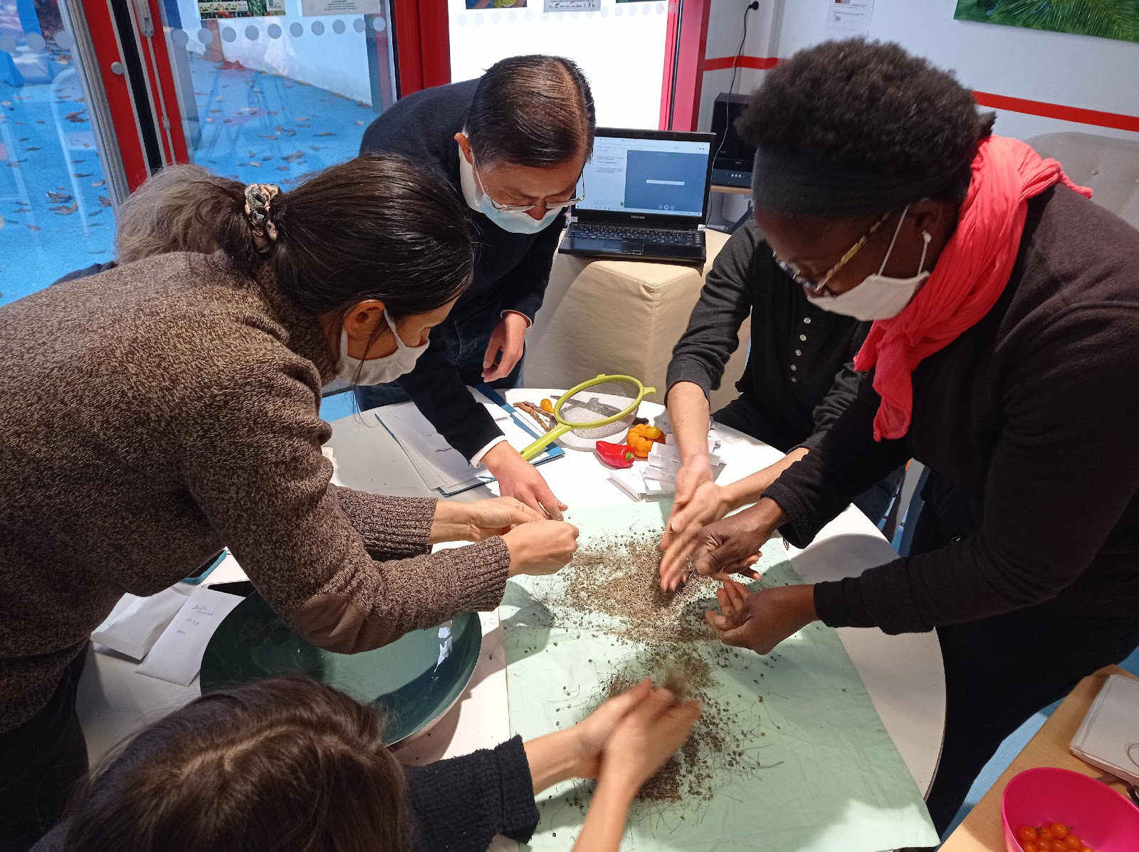 La troisième session pratique s’est déroulée en présentiel à la maison des familles de Courbevoie (92). Accompagné.e.s par Valéry Tsimba, les participant.e.s ont pu manipuler plusieurs types de porte-graines et voir différentes méthodes d’extraction, dont le poireau, le basilic et l’oeillet d’inde.